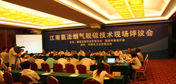 “氨法脱硫技术现场评议会”召开:由中国电力企业联合会组织、国家发改委环资司、国家环保部科技司等主管部门及五大电力集团参加的江南氨法脱硫技术现场评议会广西南宁隆重召开,9位专家组成的专家组经考察评议认为,氨法脱硫技术是一项真正可实现循环经济的绿色脱硫工艺,尤其适宜于燃煤含硫量高的电厂锅炉和工艺炉窑烟气脱硫新建及改造项目。